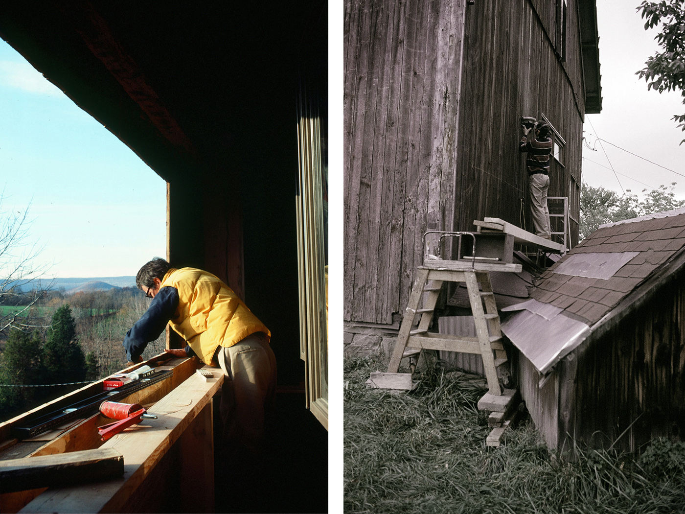 In 1978, Colin and I bought the barn with 7 other barn buildings, on 3 acres for $20,000. After 2 years of work, while living inside a 1964 Airstream trailer pulled into the barn, we were able to move in. Four years later, the living area was complete. Next, we built an upstairs studio for Colin and later added work space for both of us in the unfinished part of the Barn. In the years to come, we continued to make upgrades to the main barn, the property, and other buildings.