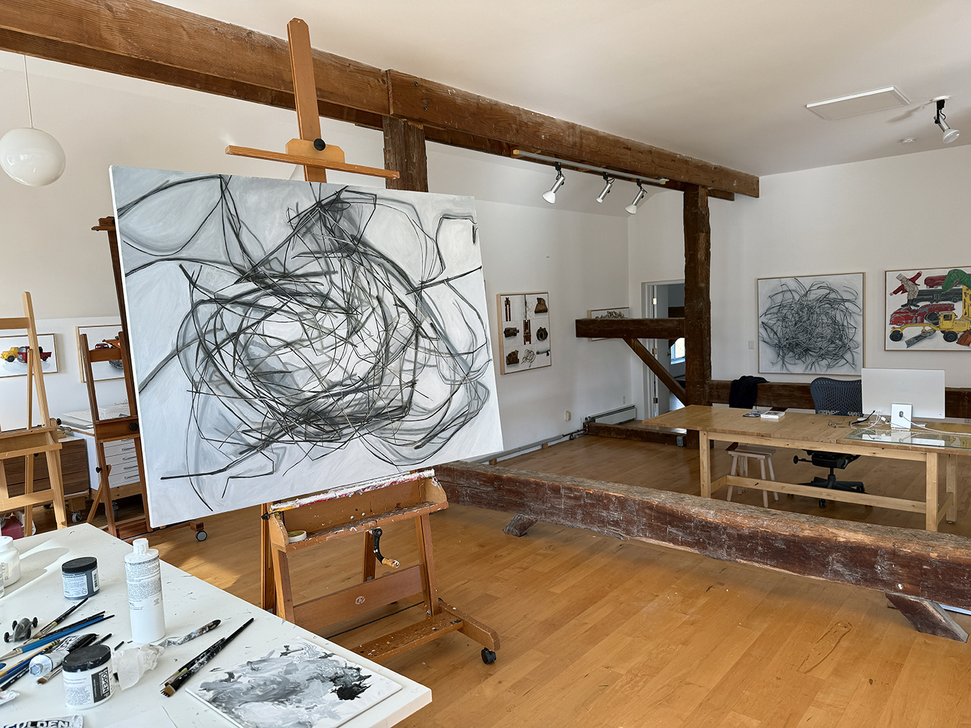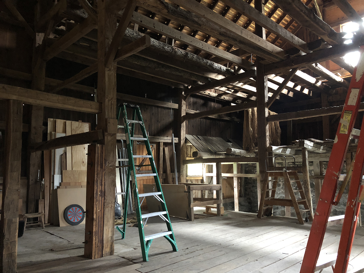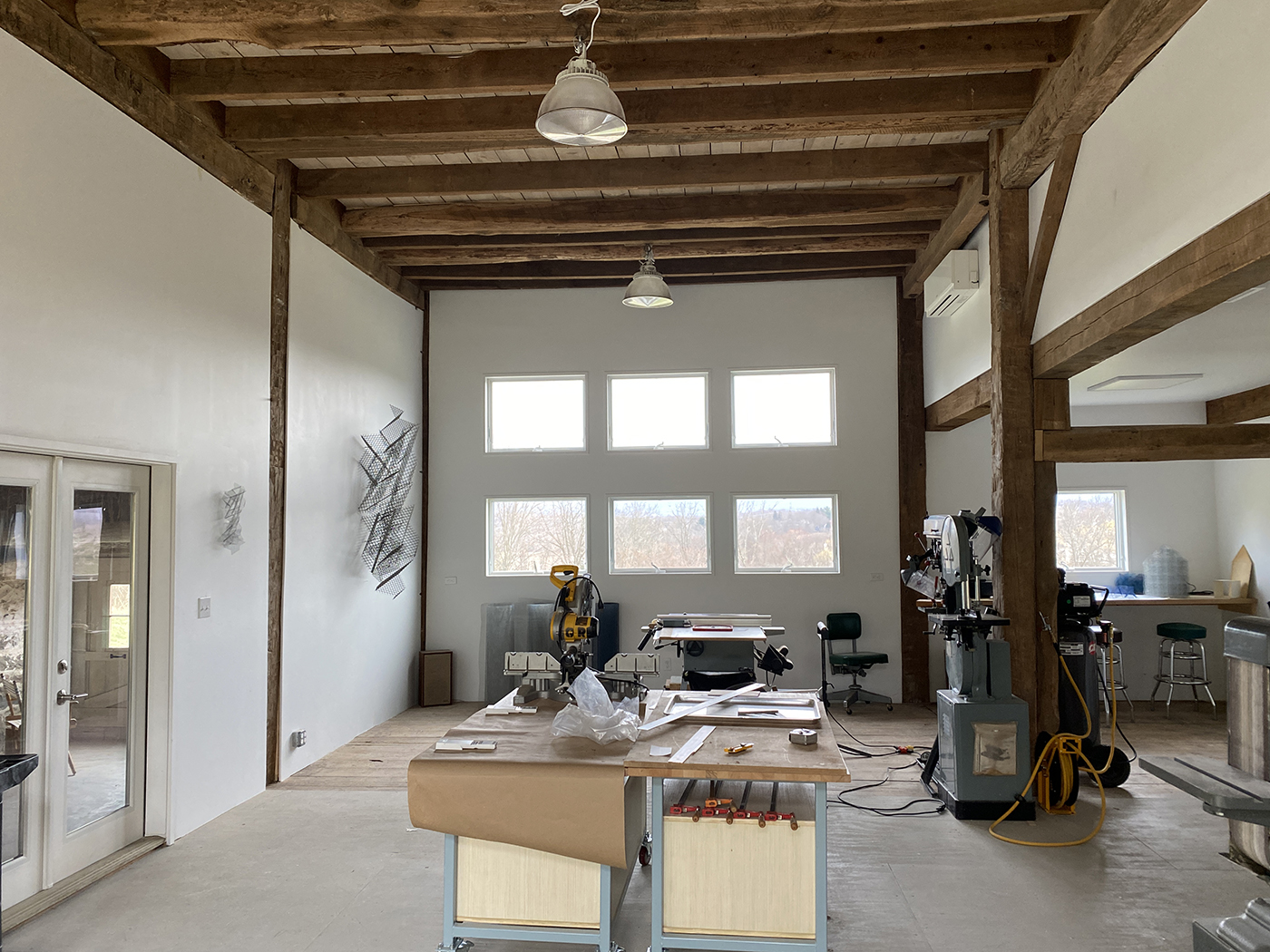 In 2015, about one third of the barn was still unfinished, allowing us (with the help of Brian's son, Tyler) to rebuild the space into a sculpture studio for Brian. A welding shed and garage would follow as well as updates to existing buildings for additional storage. We did extensive excavation and added new retaining walls to accomodate the new structures. The property is now filled with Brian's sculptures.