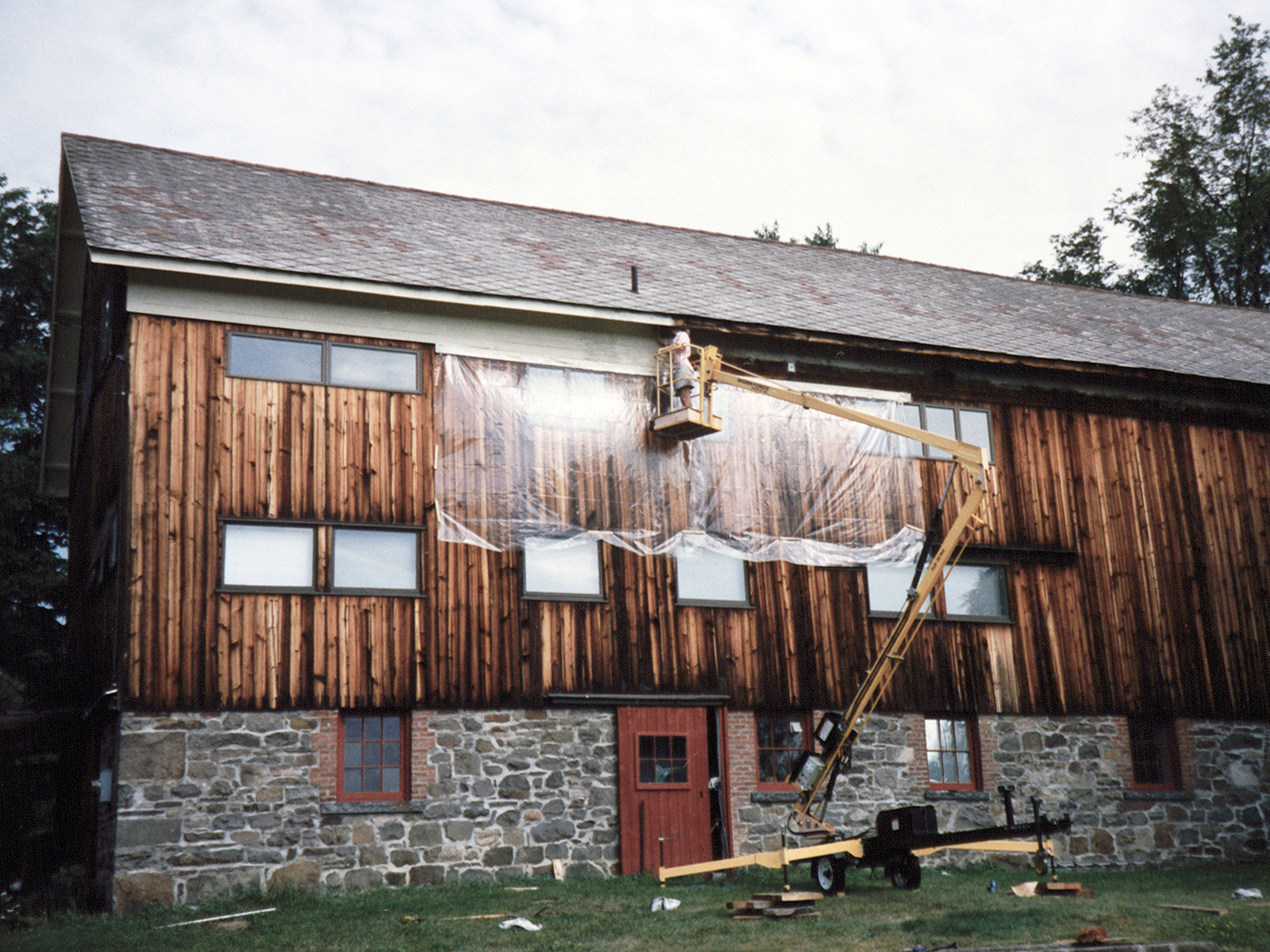 In 1978, Colin and I bought the barn with 7 other barn buildings, on 3 acres for $20,000. After 2 years of work, while living inside a 1964 Airstream trailer pulled into the barn, we were able to move in. Four years later, the living area was complete. Next, we built an upstairs studio for Colin and later added work space for both of us in the unfinished part of the Barn. In the years to come, we continued to make upgrades to the main barn, the property, and other buildings.